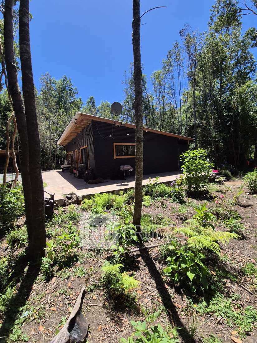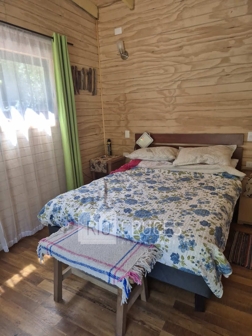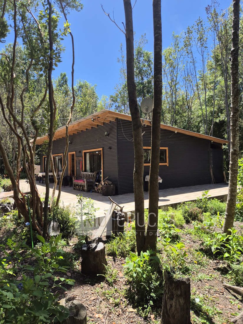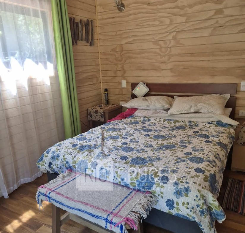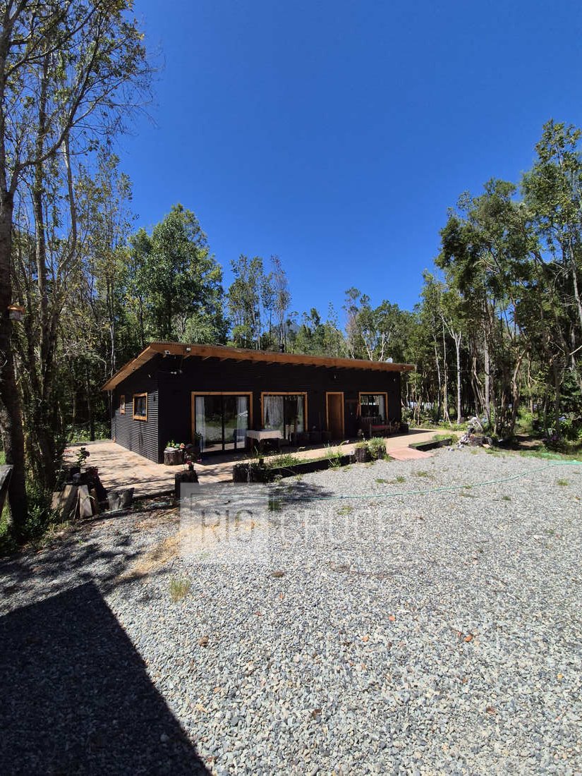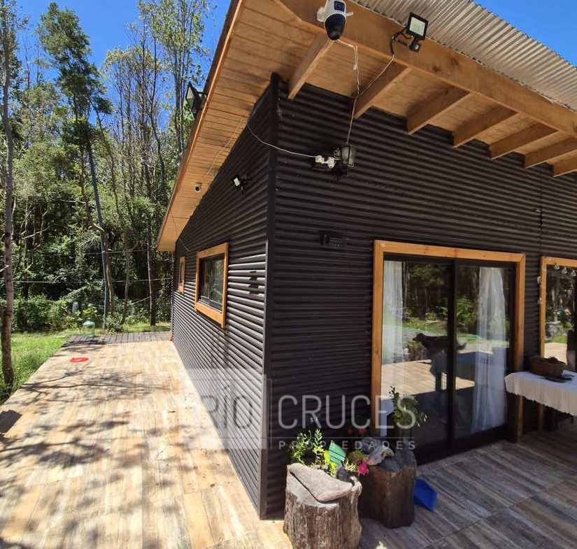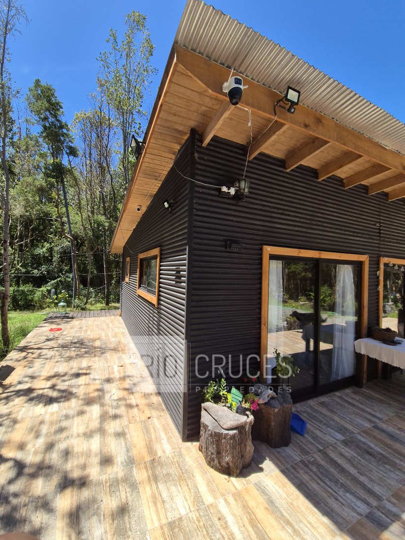 La casa, de reciente construcción, cuenta con 80 m² edificados en madera, integrándose armónicamente al paisaje. Sus espacios interiores de concepto abierto entregan amplitud y gran luminosidad natural, distribuyéndose en living–comedor, cocina americana, dos dormitorios y un baño. En el exterior, una acogedora terraza y tinaja invitan al descanso y disfrute del entorno durante todo el año.