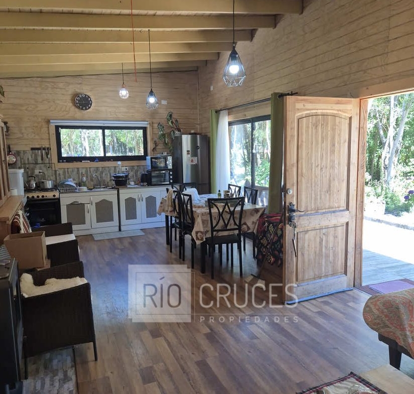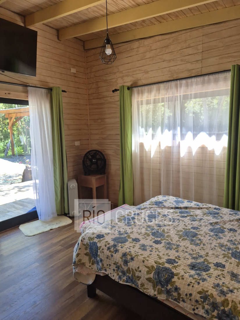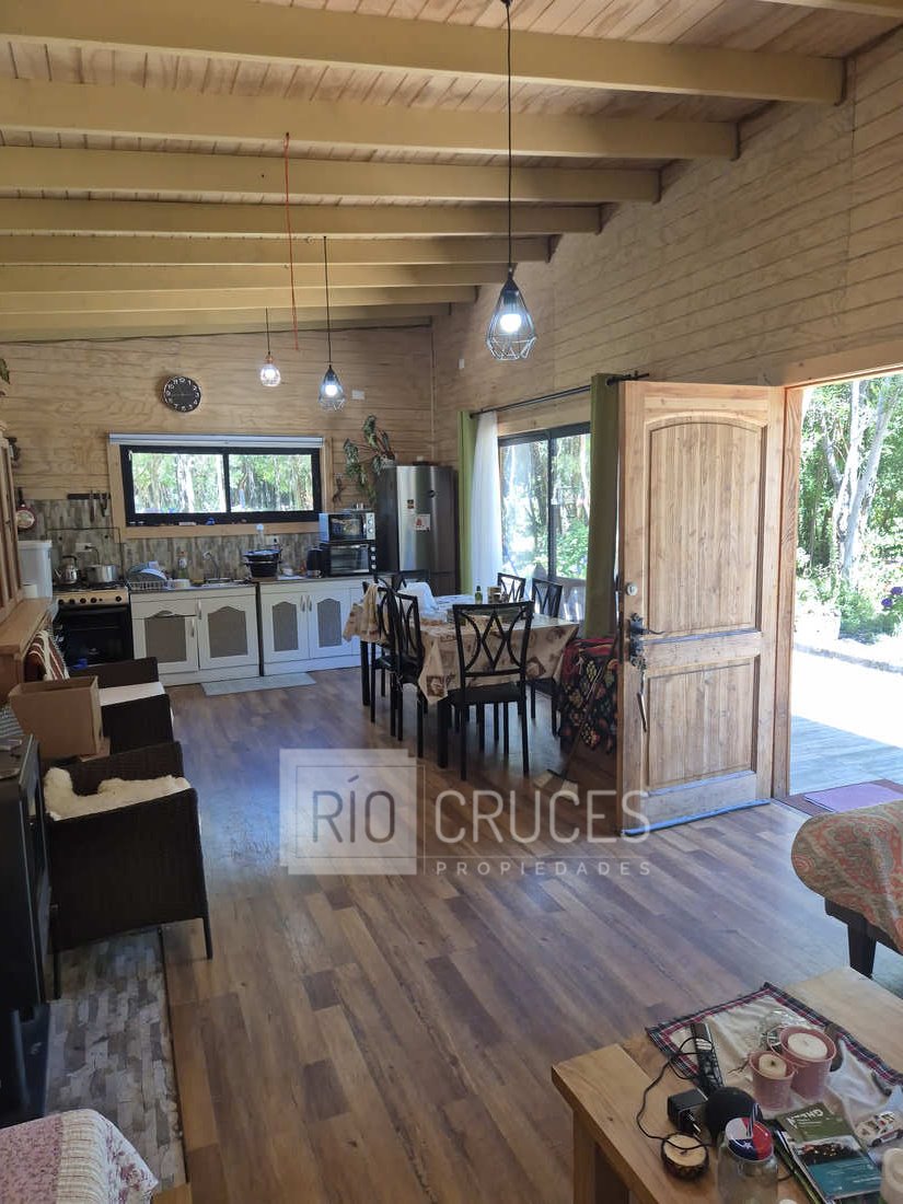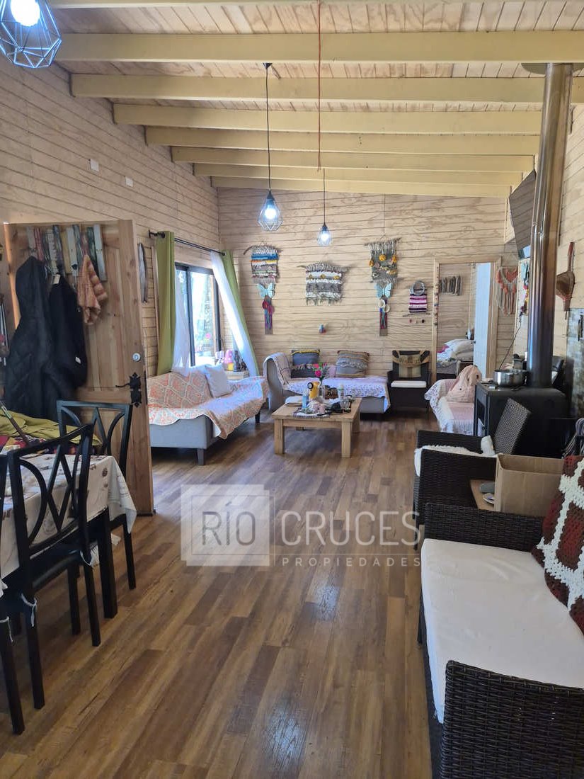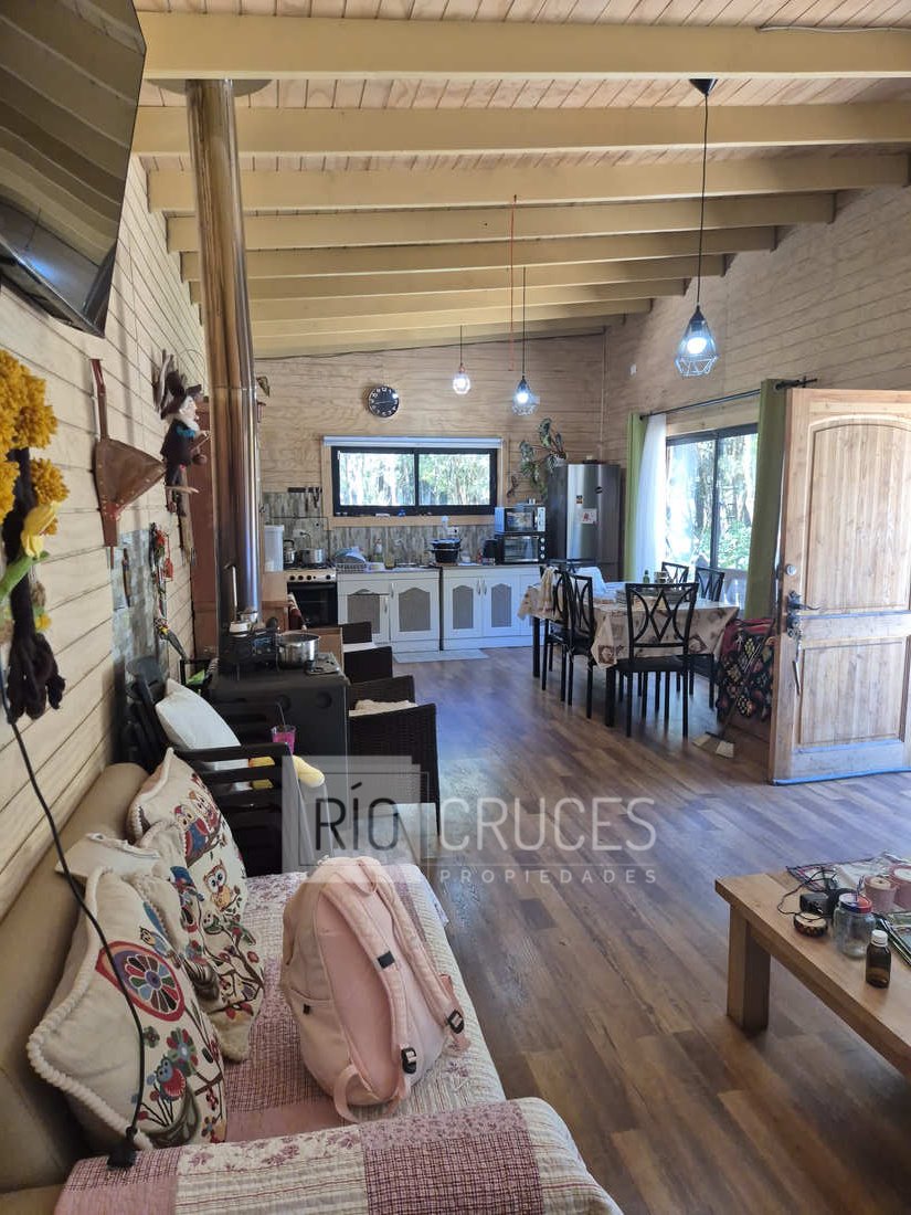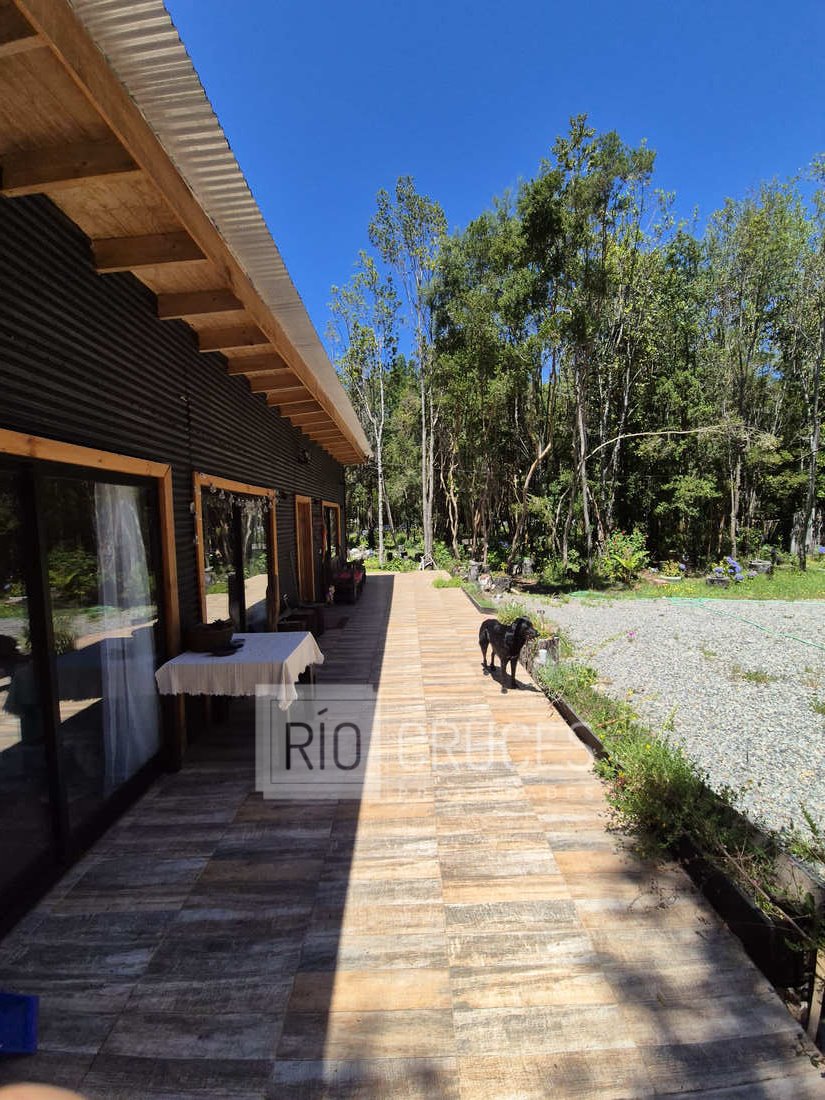 La casa, de reciente construcción, cuenta con 80 m² edificados en madera, integrándose armónicamente al paisaje. Sus espacios interiores de concepto abierto entregan amplitud y gran luminosidad natural, distribuyéndose en living–comedor, cocina americana, dos dormitorios y un baño. En el exterior, una acogedora terraza y tinaja invitan al descanso y disfrute del entorno durante todo el año.