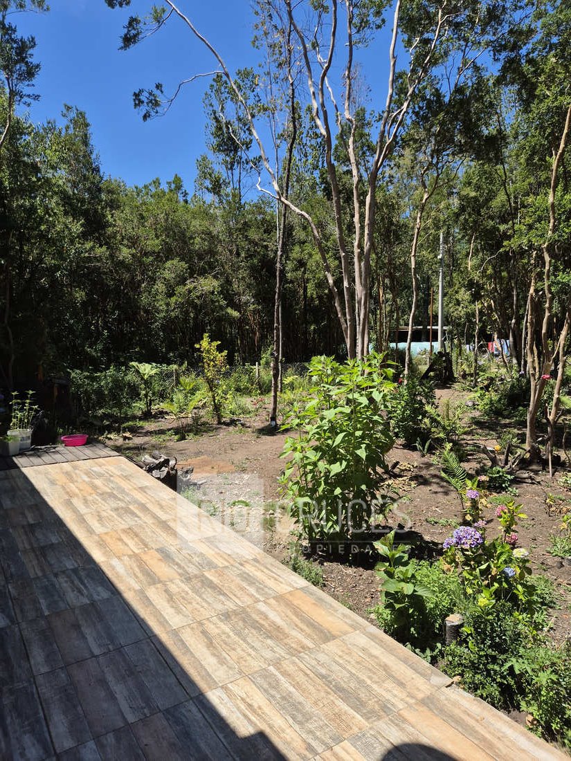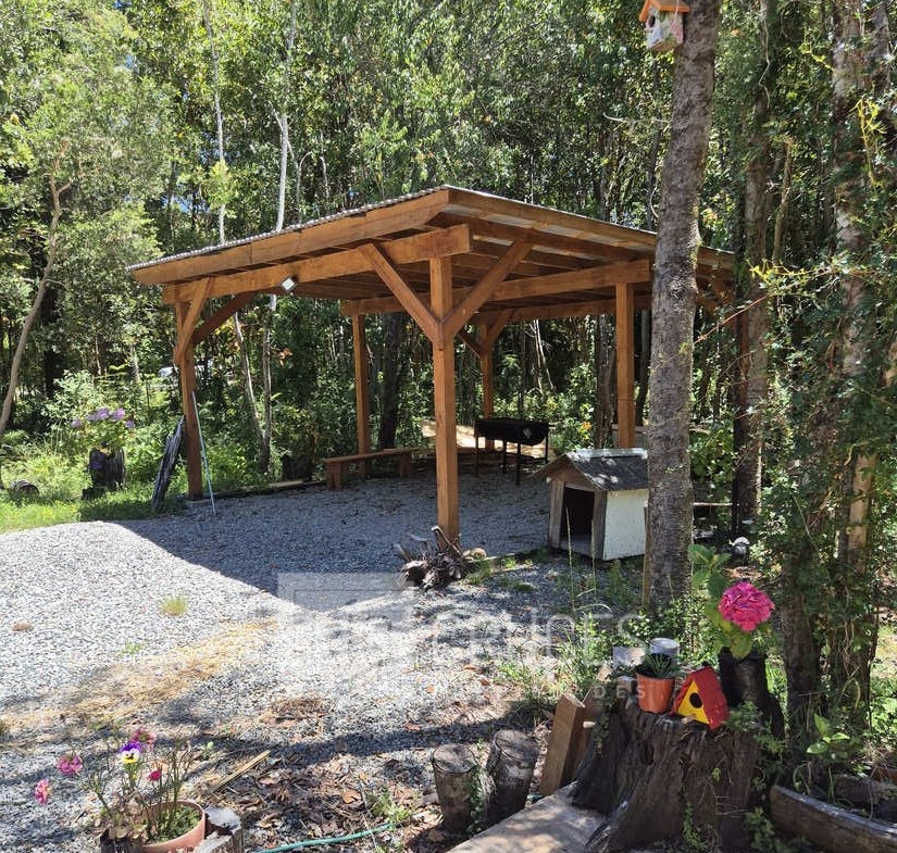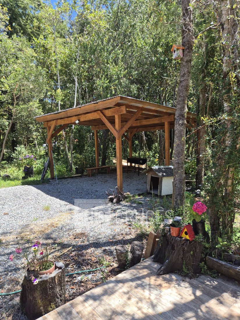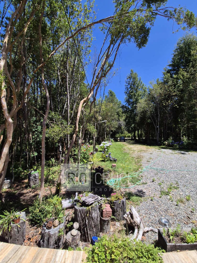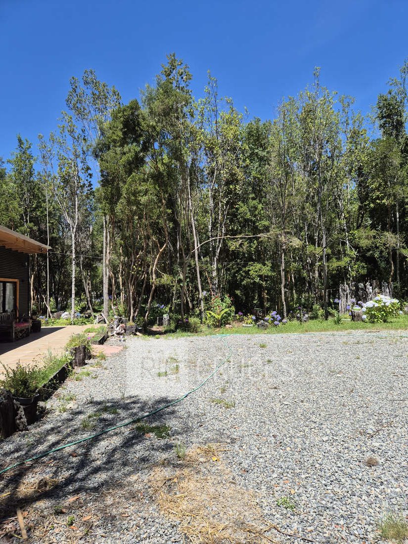 Se emplaza en una parcela de agrado de 5.000 m² con rol propio, dispone de energía eléctrica, agua potable, estacionamiento techado para dos vehículos y senderos peatonales que recorren un jardín cuidadosamente mantenido, con gran diversidad de plantas y flores.