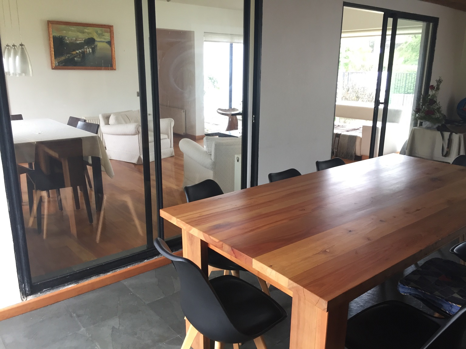 Primer piso: Hall de acceso, amplio living-comedor, cocina amoblada, quincho incorporado con gran espacio para comensales, logia, bodega, baño de servicio. Segundo piso: 3 dormitorios (principal en suite), 3 baños, sala de estar, balcón con vista parcial al Río Cruces.