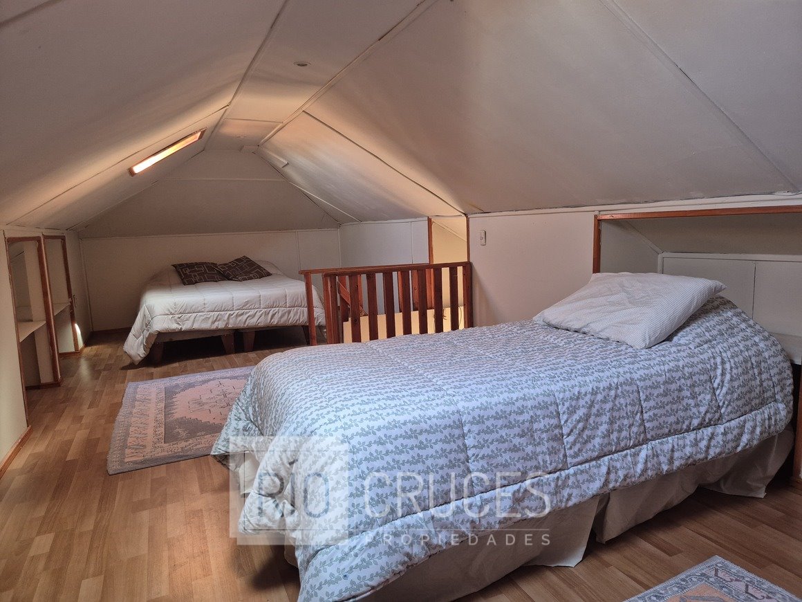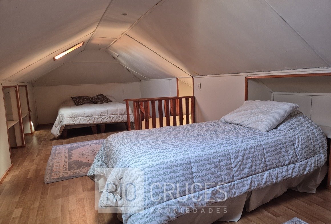 Superficie total del terreno: 209 m², construcción original: 126 m² más ampliación en segundo nivel. Distribución interior: hall de acceso, living y comedor separados, cocina con muebles base y aéreos, 4 dormitorios, 2 baños, logia y leñera, dos estacionamientos. La propiedad incluye una cabaña independiente, actualmente generando renta por concepto de arriendo, aportando un atractivo adicional para inversión o uso familiar.