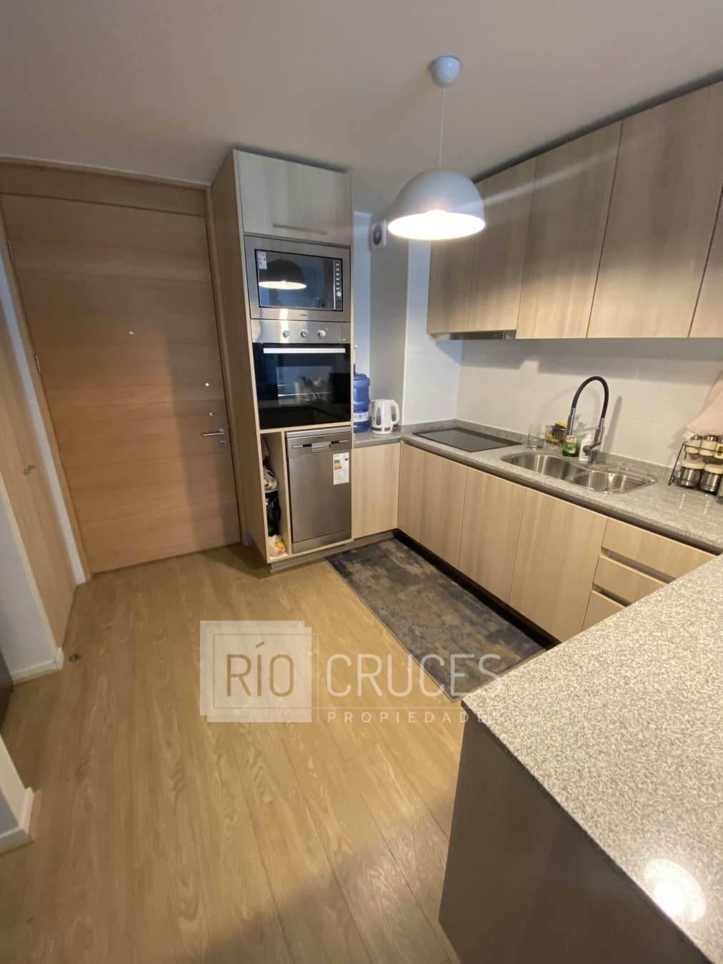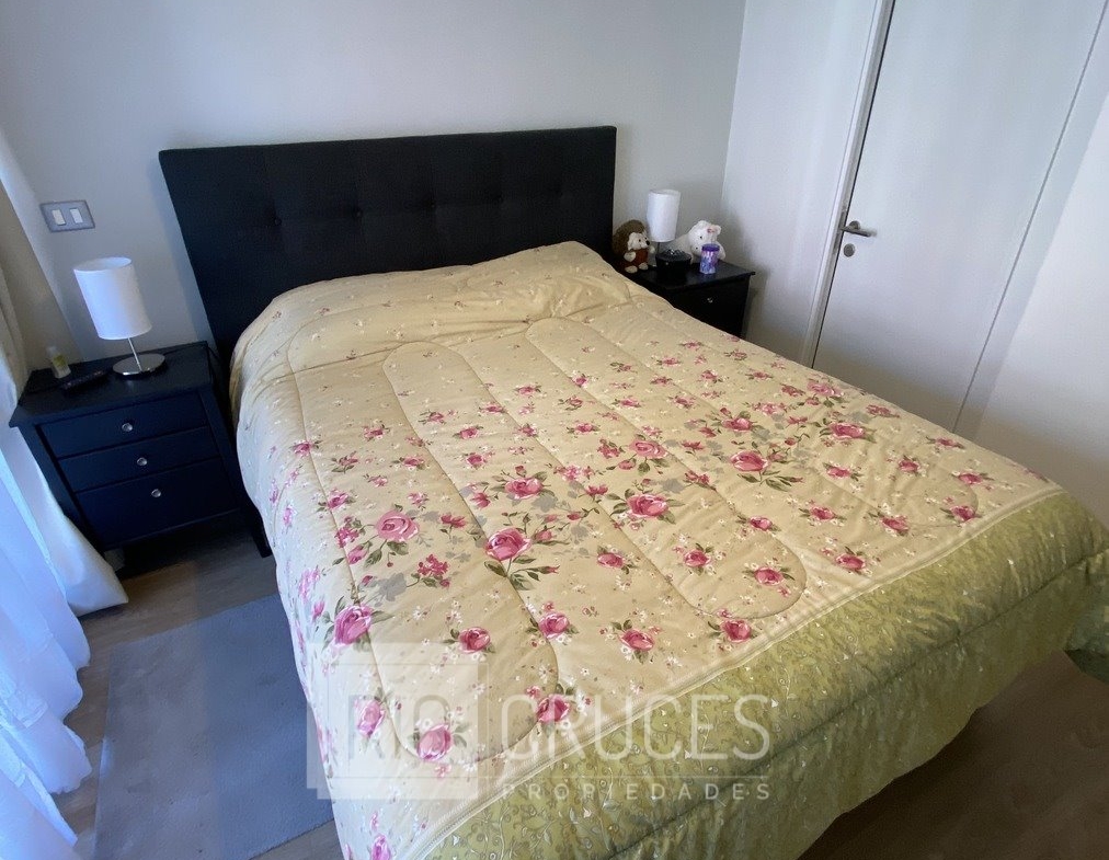 La propiedad presenta una funcional distribución interior que incluye living-comedor, dos dormitorios (principal en suite), dos baños, y cocina americana completamente equipada con encimera, horno eléctrico, microondas y lavavajillas. Además, cuenta con terraza, bodega y estacionamiento. El edificio ofrece atractivos espacios y servicios comunes, tales como amplio hall de acceso, conserjería 24 horas, jardines, bicicletero y sala de reuniones, proporcionando comodidad y seguridad a sus residentes.